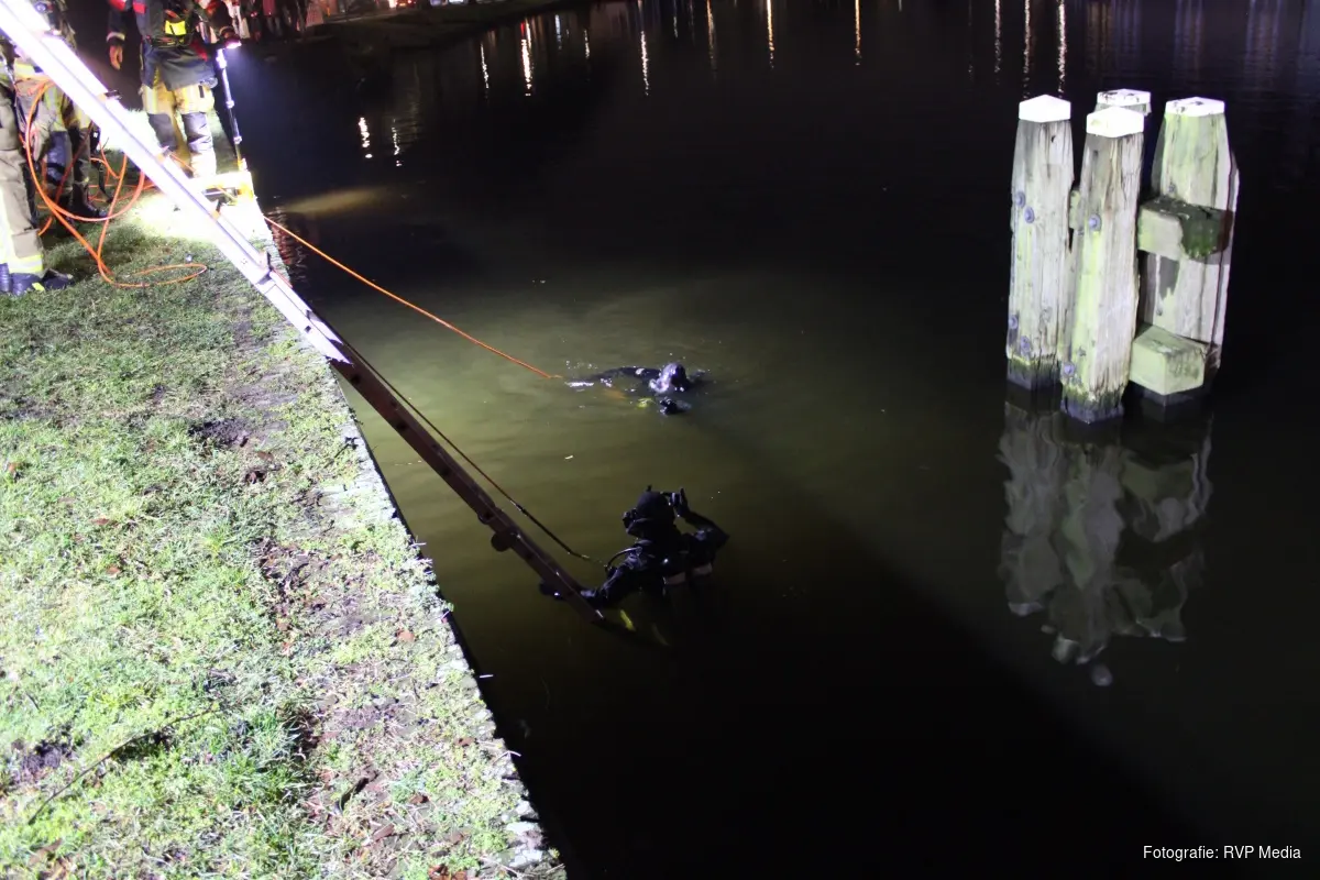 De hulpdiensten op de kant wisten wel zeker dat er een inzittende vandoor is gegaan en vroegen daarom via burgernet uit te kijken een man. Een bergingsbedrijf zal doormiddel van een duiker de auto uit de rivier gaan takelen.