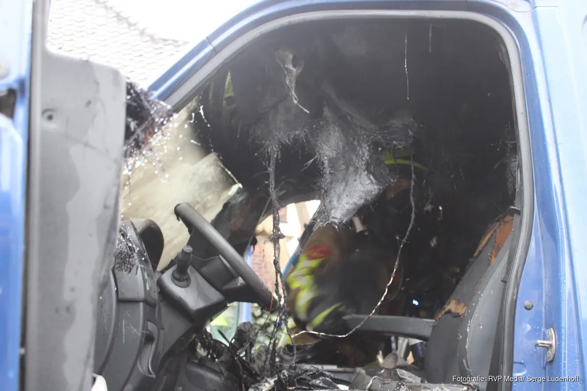 Een bergingsbedrijf zal de bestelbus afslepen.