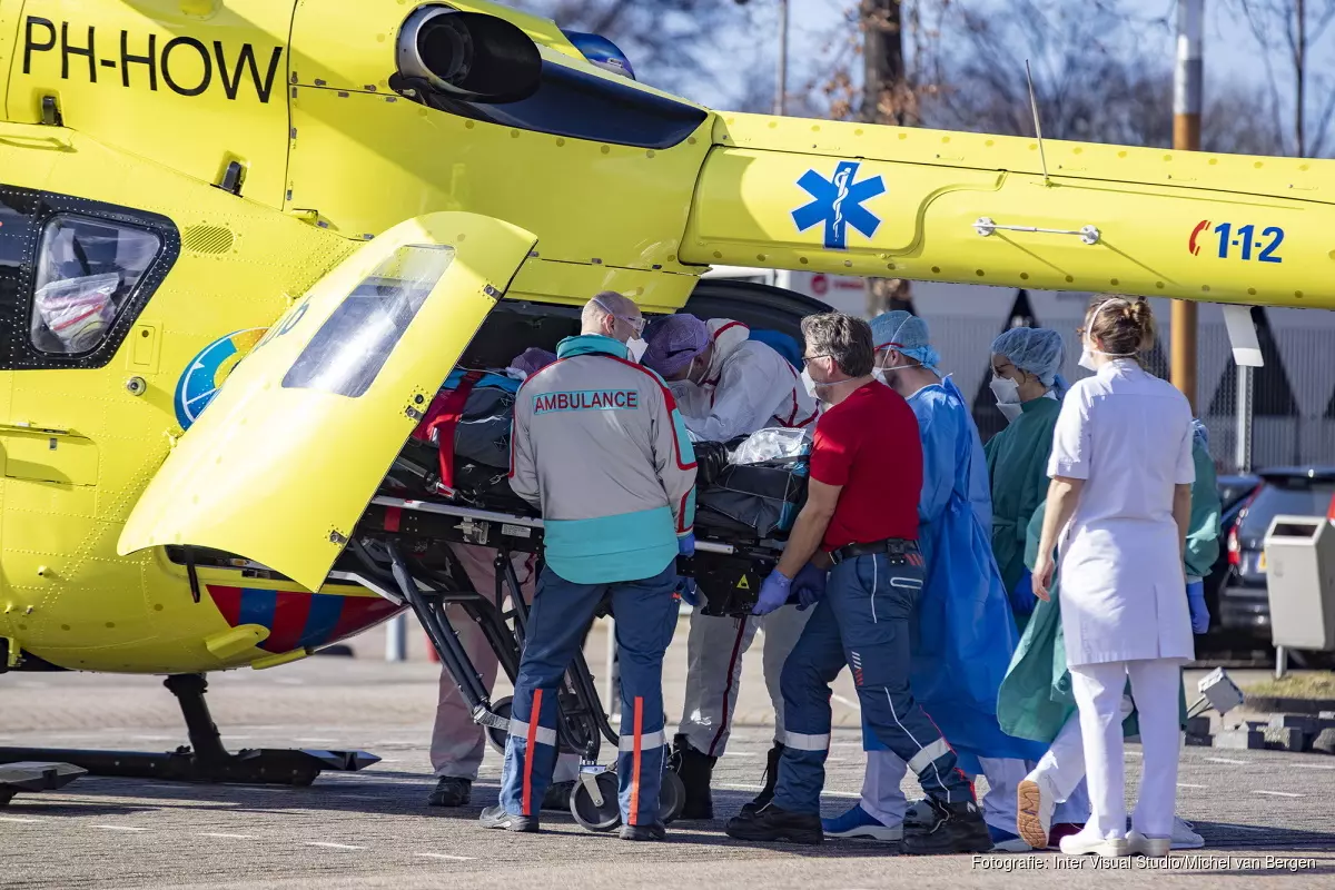 HAARLEM - De Lifeliner 5, ook wel de Corona-helikopter genoemd, is vrijdagmiddag geland op de parkeerplaats van het Spaarne Gasthuis in Haarlem. De helikopter werd ingezet om een patiënt over te plaatsen naar een ander ziekenhuis vermoedelijk in Heerlen, in het kader van de landelijke spreiding van Corona-patiënten. Noord-Holland kent deze periode naar verhouding veel Coronagevallen in de ziekenhuizen.