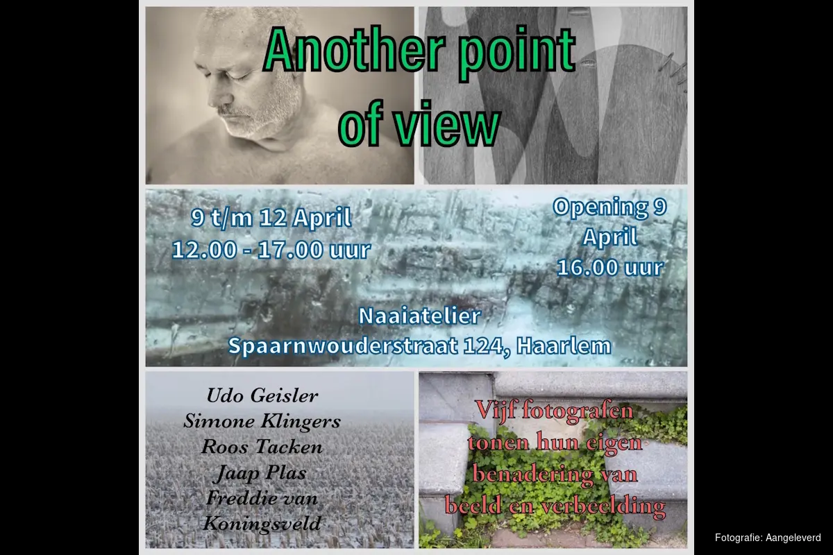 HAARLEM - Wie denkt alles al gezien te hebben, doet er goed aan tussen 9 en 12 april binnen te stappen bij Naaiatelier Haarlem. Met Another Point of View presenteert Haarlemse Fotokollektief BeeldKracht een gelaagde expositie die je uitnodigt om opnieuw te kijken naar wat je nu eigenlijk ziet. Vijf kunstenaars, vijf visies, één gezamenlijke zoektocht naar beeld en betekenis.