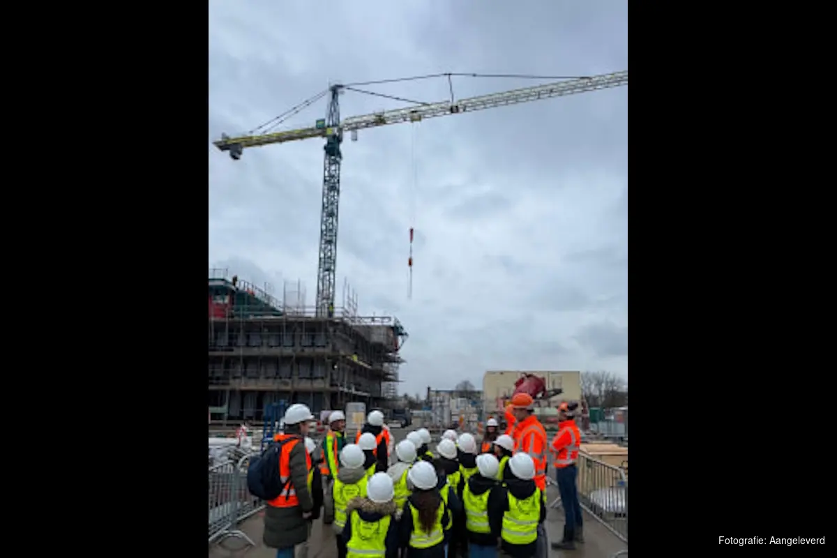 HAARLEM - 75 leerlingen van groep 5 tot en met 8 van OBS De Globe in Haarlem brachten donderdag 19 februari een bezoek aan de bouwplaats van nieuwbouwproject Rootz in Schalkwijk. Het bezoek vond plaats in het kader van het schoolthema 'bouwen', waarbij leerlingen leren hoe woningen en wijken tot stand komen.