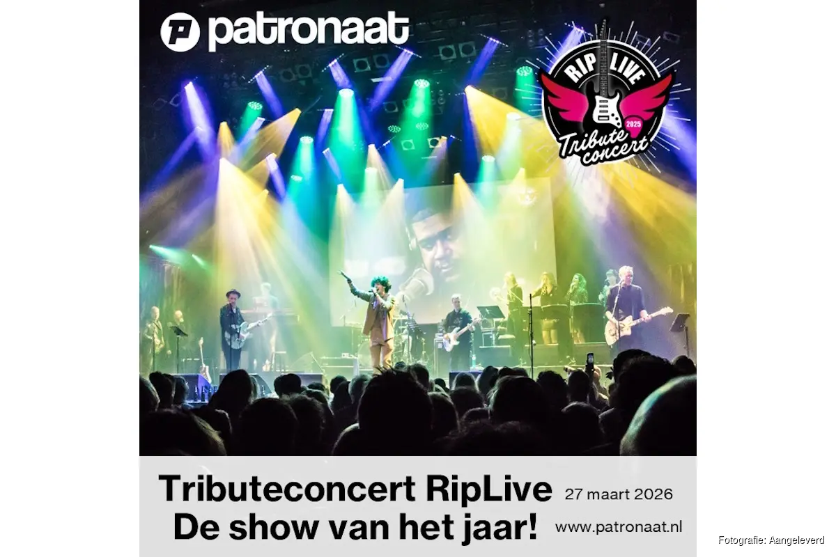 Tributeconcert RipLive remembering 2025 – Het grootste eerbetoon van Nederland op 27 maart 2026 in Patronaat, Zijlsingel 2 te Haarlem. Zaal open 19.30 uur, aanvang 20.30 uur. Kaarten via www.patronaat.nl