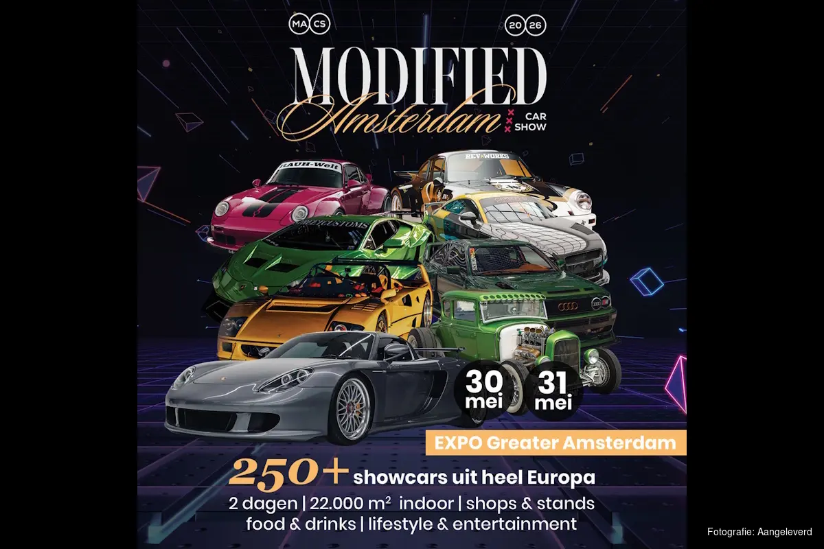 VIJFHUIZEN - Op 30 en 31 mei vindt in de Expo Greater Amsterdam in Vijfhuizen, de eerste editie plaats van de Modified Amsterdam Car Show. Dit nieuwe evenement belooft uit te groeien tot één van de grootste en meest diverse car shows van Nederland, met een sterke focus op kwaliteit, beleving en unieke voertuigen.
