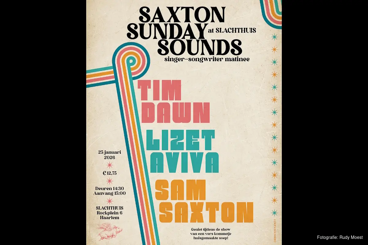 HAARLEM - Op zondag 25 januari trapt Saxton Sunday Sounds het nieuwe jaar af met een frisse editie in Slachthuis Haarlem. Na een sterk najaarsseizoen start de reeks met een programmering vol warmte, diepgang en muzikaliteit. Hoofdact is Tim Dawn, bijgestaan door het eigenzinnige talent Lizet Aviva als support.