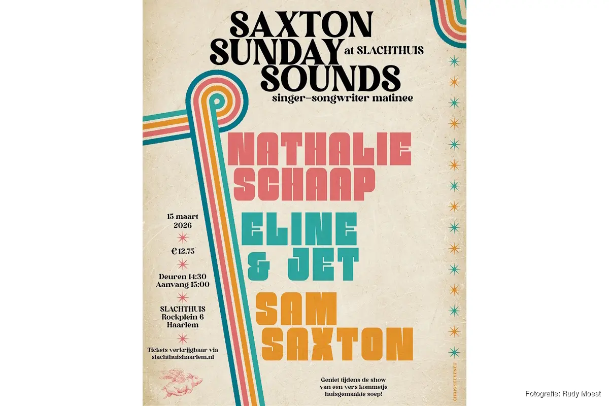 HAARLEM - Na een geslaagde editie met Krystl en DEHAZE maakt Saxton Sunday Sounds zich op voor de volgende muzikale zondagmiddag. Op zondag 15 maart staan Nathalie Schaap en Eline & Jet op het podium van Slachthuis Haarlem.